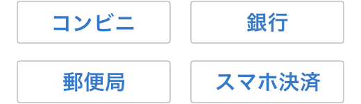 ※お支払いは「一括払い」のみとします。 ※手数料は一切かかりません。- 後払い (コンビニ、郵便局、銀行払い、スマホ決済)